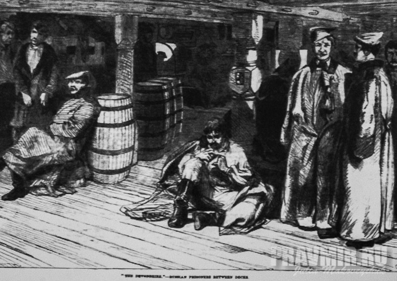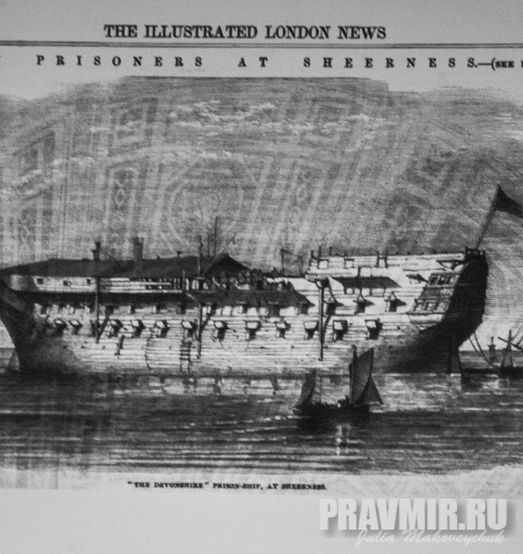 корабль-тюрьма «Девоншир» в порту Ширнесс, сентябрь 1854. Находившихся на нем русских пленных окормлял о. Евгений Попов.