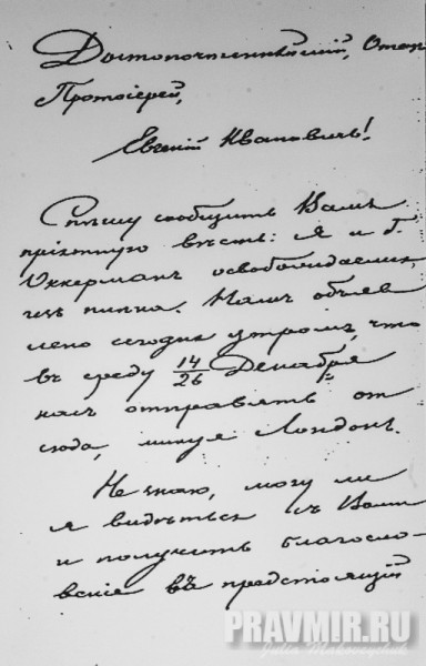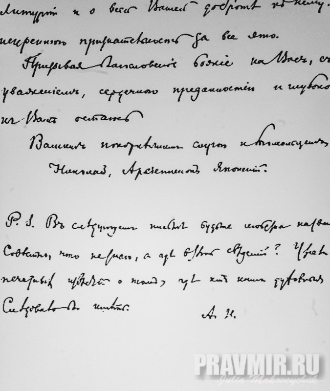 письмо архиеп. Японского Николая (свт. Николая Японского) протоиерею Евгению Смирнову, настоятелю посольской церкви 1875 — 1923 гг.