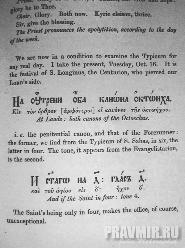 страница тома «Истории Православной Восточной Церкви», посвященного православному богослужению, англиканского священника Джона Мэйзона Нила. Его консультировал прот. Евгений Попов.