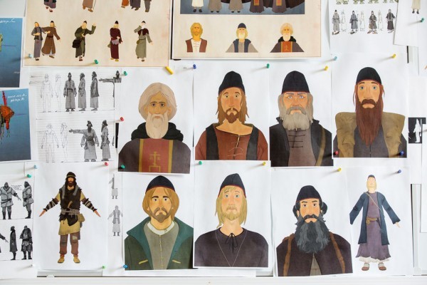 Кстати, объём данных, которые для этого пришлось отсмотреть и изучить, сложно даже представить. Гуляя по студии, мы то и дело натыкались на стенах на рисованные пейзажи средневековой Генуи – ведь наёмники-генуэзцы были на Куликовом поле в составе армии Мамая. (Позже выяснилось, что, по последней версии, генуэзский эпизод из фильма выпал).