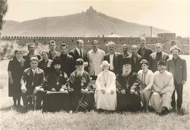 Мцхета. Владыка Илия (второй слева в нижнем ряду), Патриарх Ефрем, священнослужители и прихожане собора Светицховели