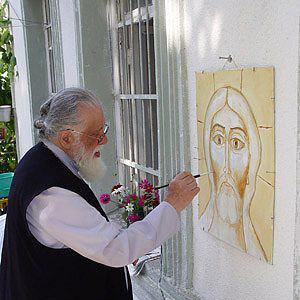 Нашим общим предком был Шиола. Патриарх вылепил его бюст, который сейчас находится в нашей деревне Сно. Патриарх пишет музыку. Вы слышали его Sanctus, Agnus Dei, Ave Maria, Κύριε ελέησον?