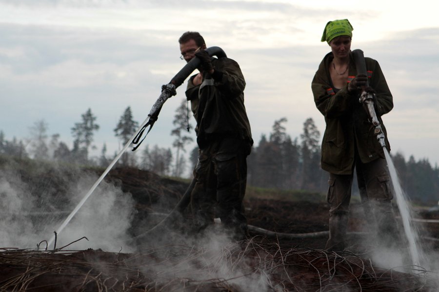 И это только один лагерь. Совсем недалеко, в Рошали, стоит точно такой же, где волонтеры бьются с открытым огнем – там ситуация хуже, поднявшийся ветер начал «расширять» территорию огня. Но здесь, под Рязановским, добровольцы надеются затопить торф, тлеющий буквально на глубине одного метра. Это работу никак назвать легкой, и уж тем более, чистой. Надо прокладывать рукава, потом заливать торф водой – порой мутной жижей обкатывает только ботинки, не успеешь увернуться – окатит по пояс. Правда, здесь не очень опасно – на самых трудных участках стоят местные пожарные расчеты, и они не устают благодарить приехавших со всей страны волонтеров.