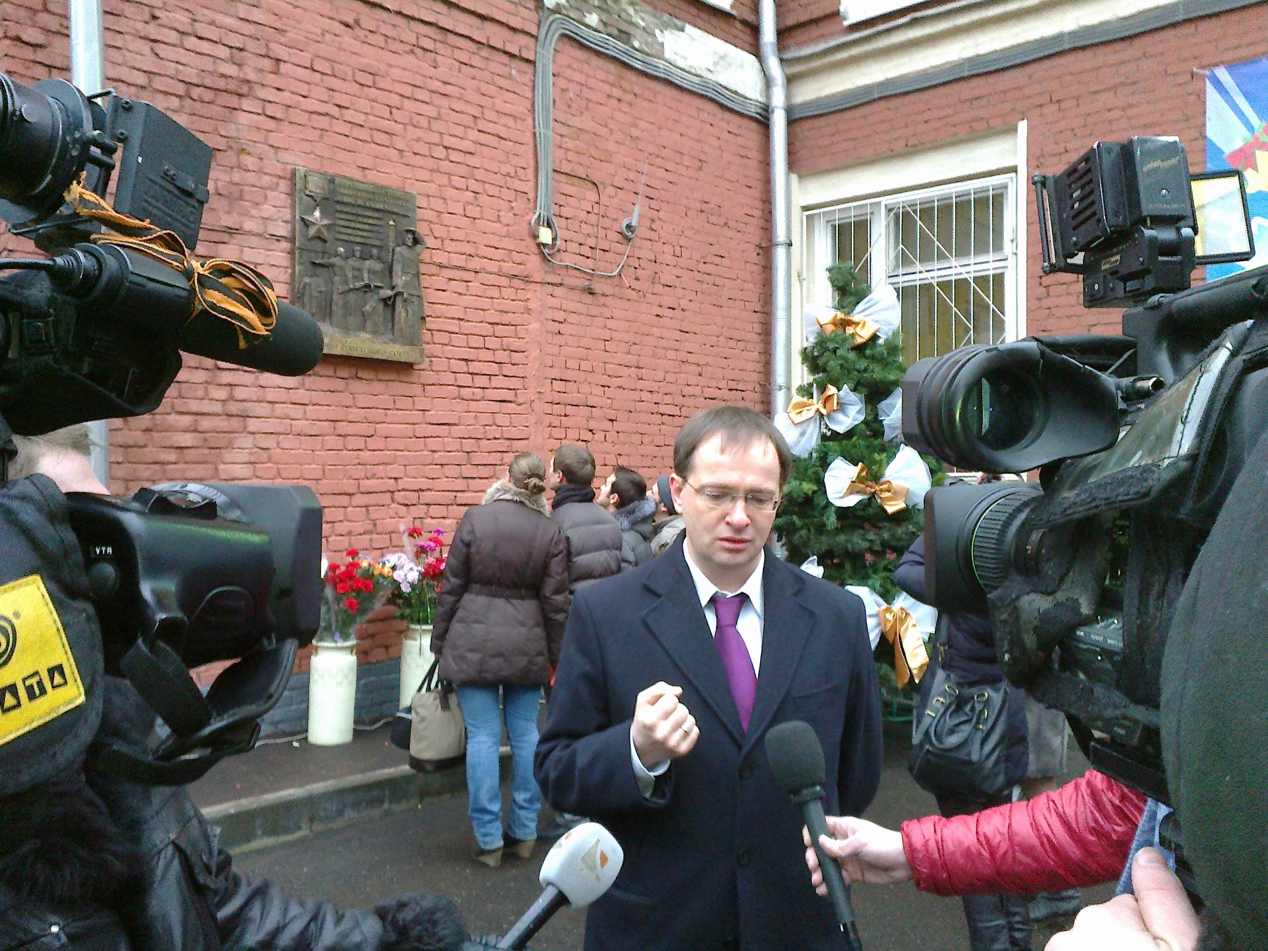Председатель Комитета Госдумы по культуре Владимир Мединский, принявший участие в торжественном митинге по случаю открытия мемориальной доски, заявил: