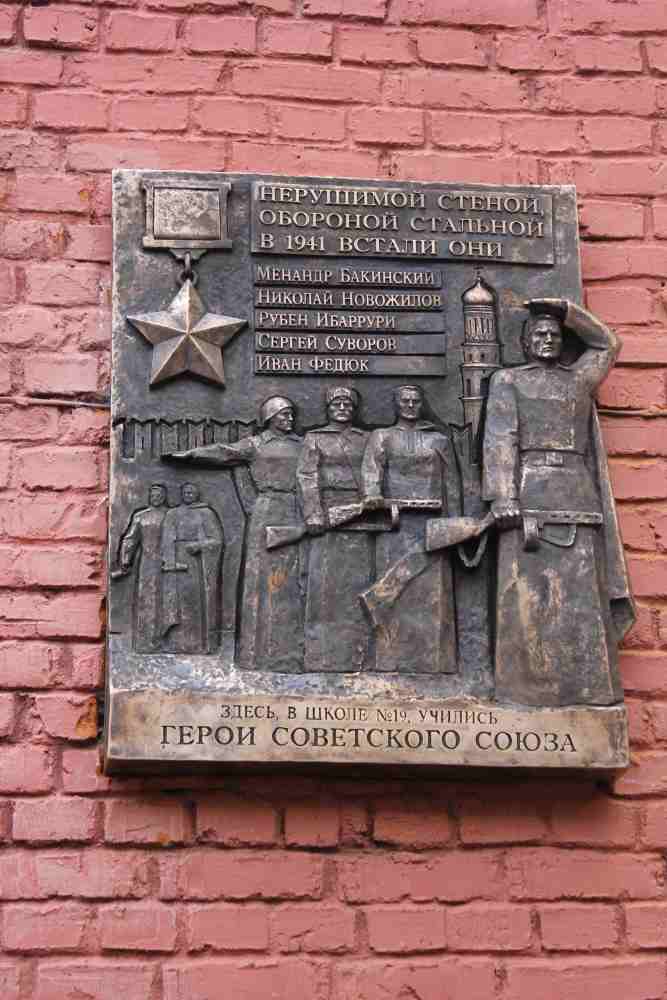 Зубцы Кремлевской стены, за ней — крест православной церкви, а перед ней — встают фигуры воинов. Таков этот бронзовый сюжет… «Нерушимой стеной, обороной стальной», — звучал на школьном дворе «Марш защитников Москвы». Здесь, в московской школе №19, сегодня проходил торжественный митинг, посвященный открытию мемориальной доски в память о пяти учениках школы, ставших во время Великой Отечественной войны Героями Советского Союза.