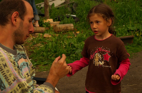 Маленькая дочка хозяев лагеря, Ева, очень понравилась нашему Вовке. Он то и дело заговаривал с ней, а малышка, хоть и пугалась, но с интересом смотрела на этого здорового дядьку, с таким восторгом изучавшего детские игрушки. За несколько дней до отъезда она подарила Вовке сердечко-кулон на ниточке.
