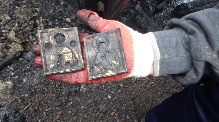 На пепелище были найдены две вещи. Во-первых, напрестольное Евангелие – абсолютно целое, только страницы на срезе опалились. А во-вторых – антиминс. Плат из совсем не огнеупорной ткани со вшитой в него частицей мощей. Абсолютно цел – только верхний «футляр» из синтетики полностью расплавился.