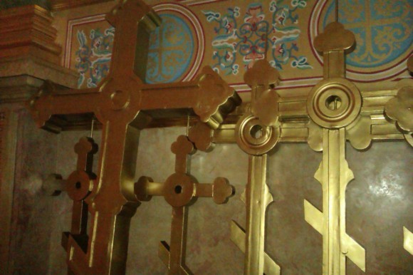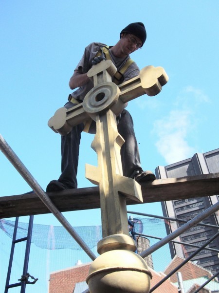 А кресты, отсутствие которых вряд ли заметили прихожане, можно потрогать прямо в храме, не протягивая руки к небу. Сейчас те редкие дни, когда можно притронуться к тем самым крестам, в позолоту которых вложил свои средства царь-страстотерпец. Скоро кресты будут позолочены, вновь освящены и займут свое место на соборных куполах.