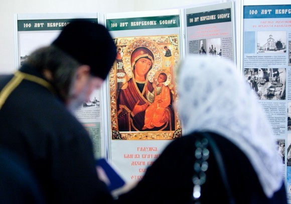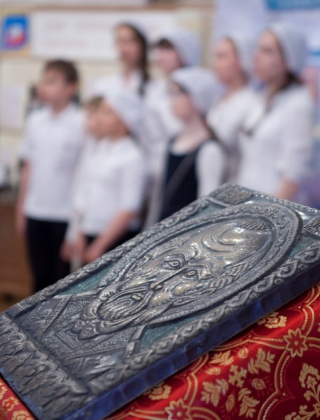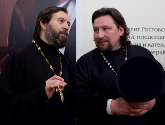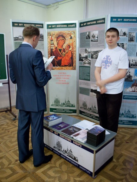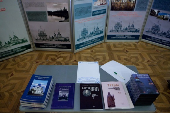 Кстати, перед конференцией в холле зала была организована выставка икон из ризницы храма Всех Святых на Соколе и частных собраний, облачений и прочих предметов, связанных с именем свт. Николая Мирликийского.