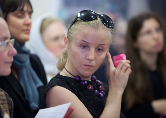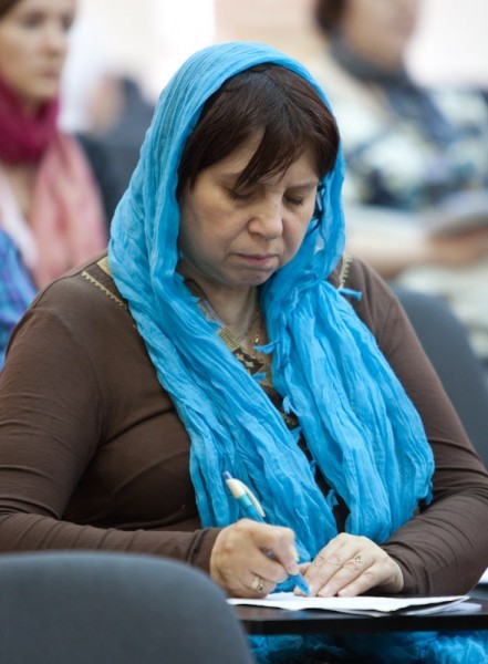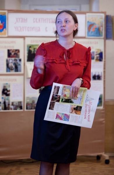 После выступления отца Дионисия открылись секционные заседания конференции. Первой на них выступила Мария Ненарокова, к.ф.н., старший научный сотрудник ИМЛИ им.Горького РАН с докладом на тему «Святитель Николай в литургической поэзии X-XIV веков».
