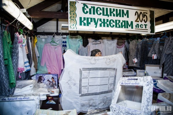 О ценообразовании она знает всё: на фабрике работает финансовым менеджером, но и на ярмарке стоит с удовольствием. Только холодновато. «Многие знают елецкие кружева, – с гордостью замечает она. – Покупают и столовое, и постельное! Сюда мы привезли всего понемножку, а если в магазин при фабрике приедете, то там еще что-то интересное найдете».
