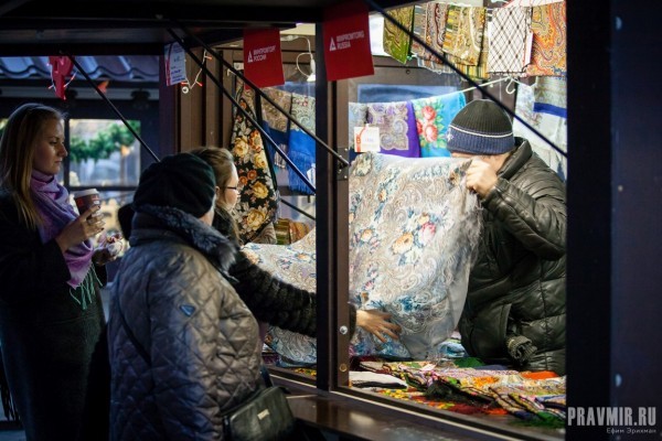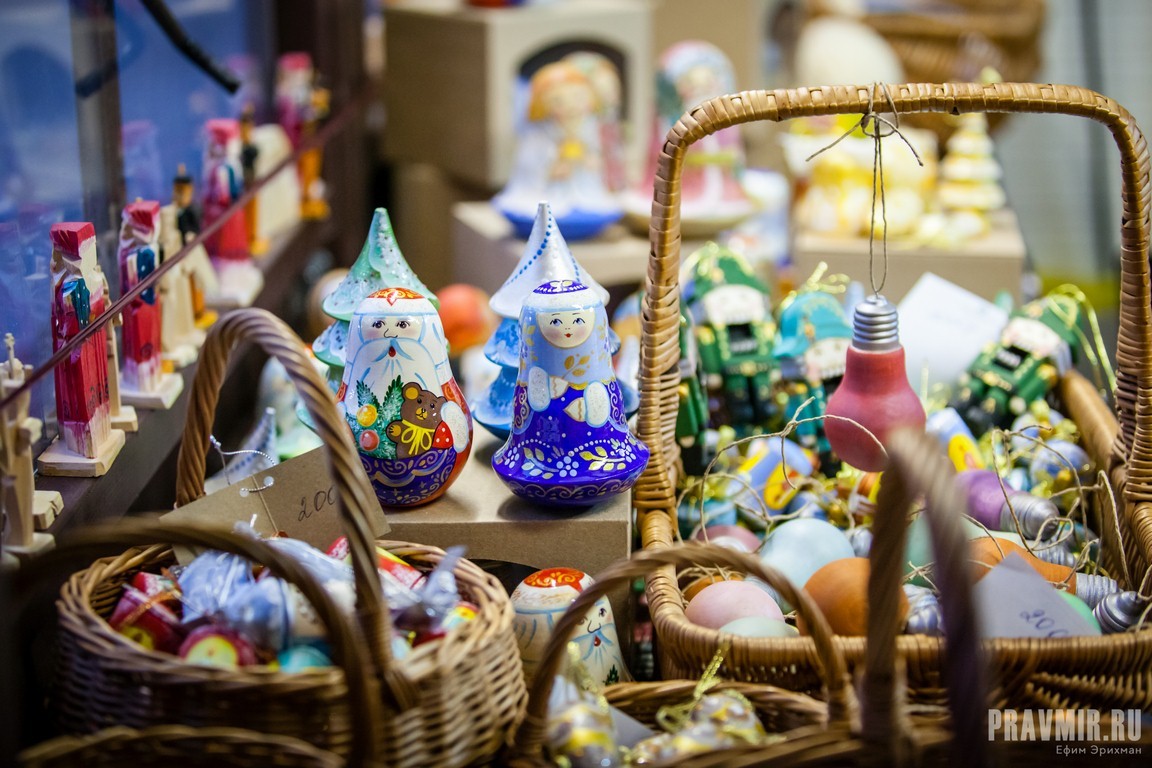 Ярмарка небольшая, но уютная. Здесь действительно нет «китайщины» и примитивного фаст-фуда, зато есть исторические и новые отечественные производства. Можно купить елецкие кружева, хохломскую и семеновскую расписную посуду, павловопосадские и оренбургские платки, дулевский фарфор, изразцы, новогодние игрушки клинской фабрики «Елочка», гжельскую, вятскую, скопинскую и псковскую керамику и многое другое – всего в ярмарке принимают участие более 20 предприятий. А в выходные есть шанс поучаствовать в бесплатном мастер-классе.