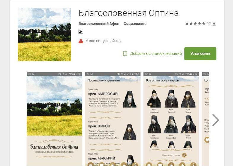 Чтобы скачать приложение, в AppleStore или GooglePlay следует ввести слова «Благословенная Оптина» или пройти по ссылкам: