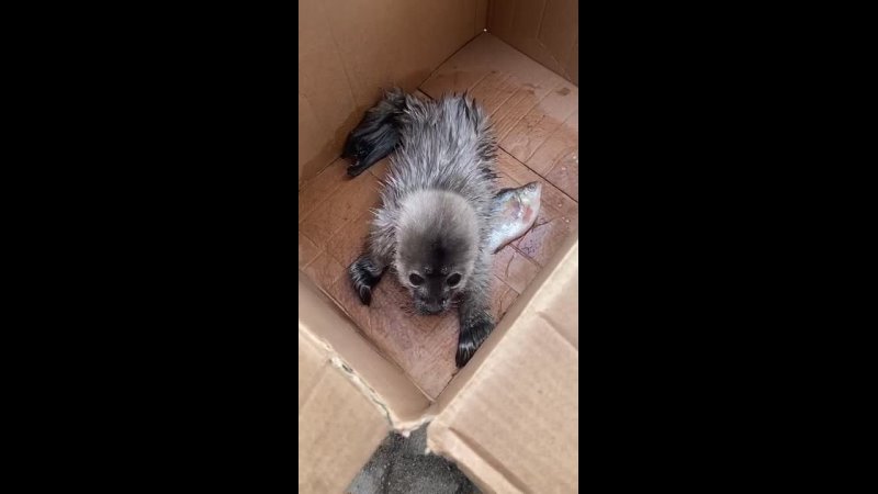 По словам очевидцев, детеныша принес местный рыбак, который нашел животное на льду.