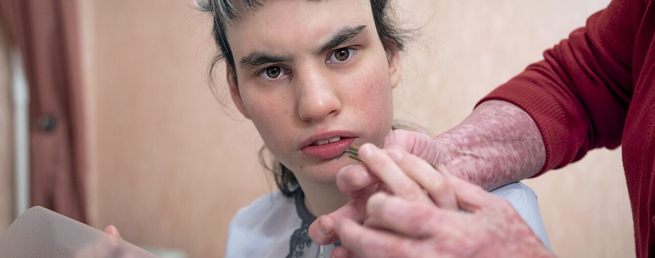Первую инвалидность Женя получила в четыре месяца, диагноз — иммунодефицит. Врачи установили, что первоначальной причиной было внутриутробное поражение центральной нервной системы. В год поставили ДЦП. Через два с половиной — олигофрению. Несколько лет ей ставили аутизм. И только к восьми годам Жене назовут последний диагноз — синдром Лежена.
