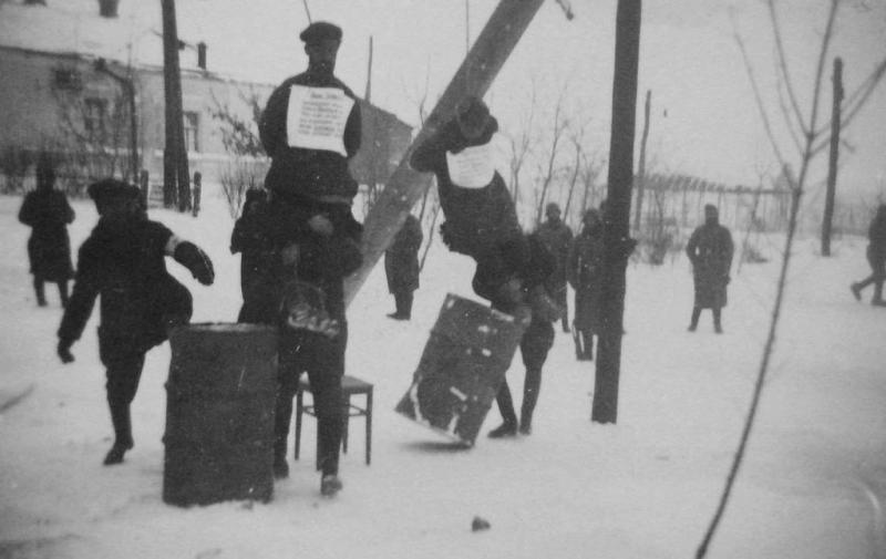Придя в город, немцы первым делом поставили на центральной площади города виселицы. И тут же повесили четверых мужчин. В здании нашей школы устроили гестапо.