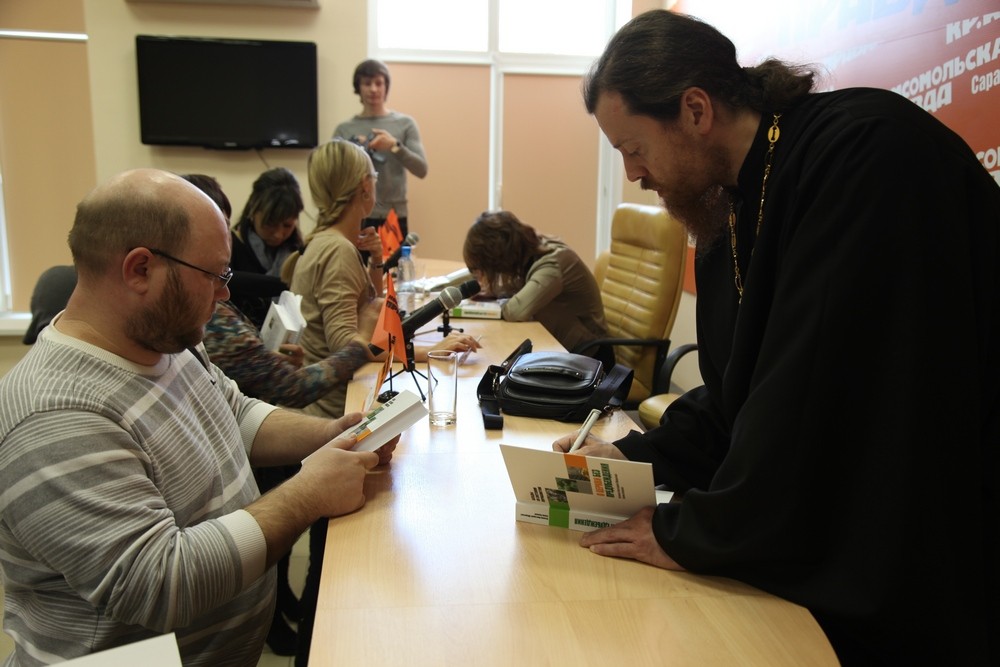 29 марта в Саратове состоялась презентация книги «О Церкви без предубеждения. Беседы со светским журналистом». У нее два автора — руководитель информационно-издательского отдела Саратовской епархии игумен Нектарий (Морозов) и саратовский журналист Елена Балаян. Жанр книги — живая беседа. Именно это и стало поводом для начала разговора во время презентации, которая прошла в Пресс-центре «Комсомольской правды в Саратове».