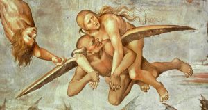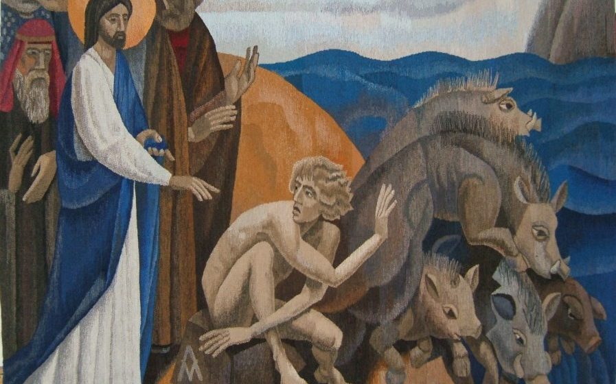 И что мы видим? Этот убогий человек, который бежит от народа, из общины, удаляется заповедей, но….узнает Христа. А бесы гонят его в пустыню, и он живет в гробах! Он в одиночестве живет в гробах, а бесы ждут его смерти. Вне народа, вне церкви, вне общины — он как муха в сетях паука, который верно приближает ее к смерти. А то, что бесы ждут смерти, не вызывает сомнений и показывает эпизод с гибелью стада свиней.