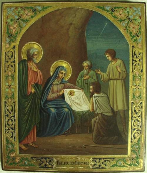 Согласно этой традиции сцена Рождества представляется нам более натуралистически, так, как если бы мы присутствовали в Палестине I века, хотя, конечно, и эти изображения не лишены и своей символики и своей красоты. Они тоже приняты Церковью и имеют право на жизнь.