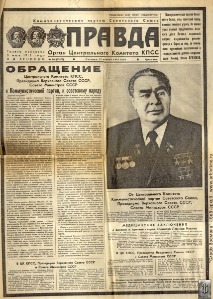30 лет со дня смерти Брежнева (10 ноября) и избрания генсеком Андропова (12 ноября).