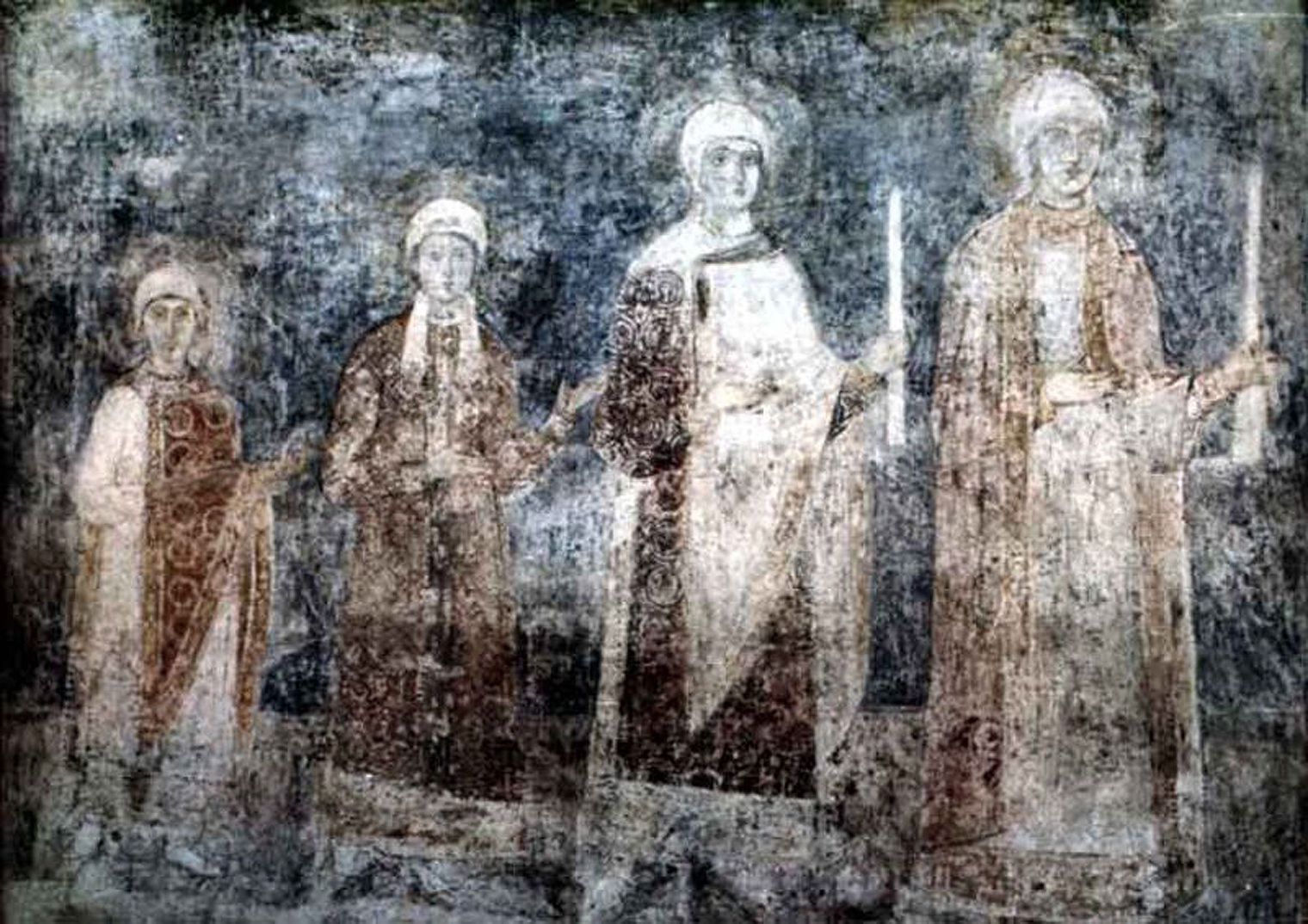 Вот вам первое – и практически детективное свидетельство: в Киеве стоит один из древнейших храмов Руси – Софийский собор, в котором некогда показывали фреску «Вера, Надежда, Любовь и мать их Софья». Ну, делали это на самом деле, неграмотные экскурсоводы. Тщательное изучение фрески а также зарисовок голландца Абрахама ван Вестерфельда XVII века, посетившего Киев, показало: перед нами не традиционный христианский сюжет, а более масштабное изображение: ктиторская фреска XI, рисующая Ярослава Мудрого, основателя храма, и всю его семью, предстоящими перед Христом. Четыре святые – на самом деле, четыре княжича, которым «реставратор» XIX века сменил шапки на белые платочки. Шапки видны и на зарисовках Вестерфельда, и на радиоэмиссионном исследовании, которое провели в 1980-х годах.