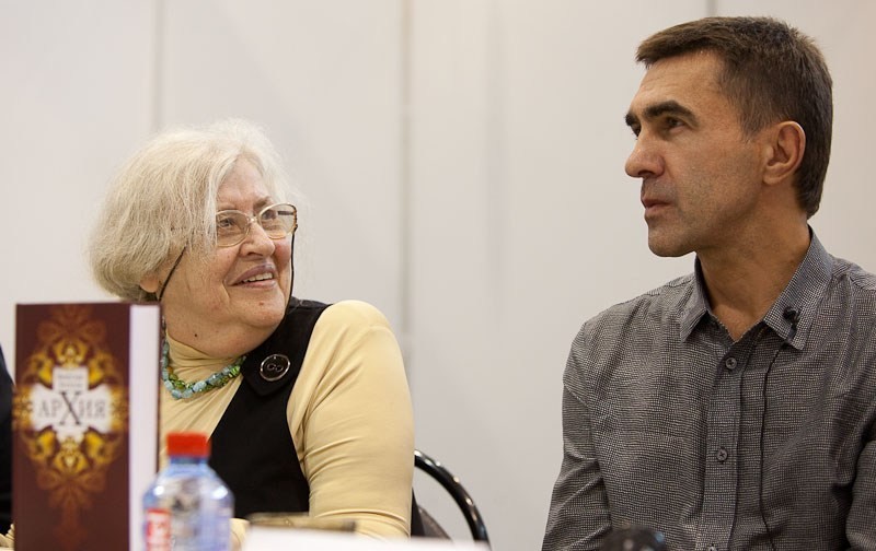 Там была такая замечательная женщина, (она мало здесь известна, потому что она в основном в Англии живёт и работает), –прекрасная узбечка, Севара Назархан. У неё сценическое имя в Англии – Севара Эльф. Она действительно такая маленькая, невероятно изящная, с фантастически прекрасным голосом. Спиричуэлский тембр. Она своё отпела и немного раньше уходила, ко мне подошла и на прощание сказала: «Знаете, я вам завидую. Я мечтаю дожить до ваших лет и стать такой, как вы». Это потому, что я про творчество сказала, что творчество и свобода в Боге – это две совершенно неотъемлемые вещи.