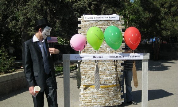 В Москве группа молодых людей прошла с растяжкой «Смерть кремлевским оккупантам». В Ростове-на-Дону некие затейники инсценировали «суд» и «расстрел» над Навальным*, Гудковым**, Немцовым и Горбачевым, торжественно прострелив воздушные шарики, которые должны были символизировать головы казнимых.
