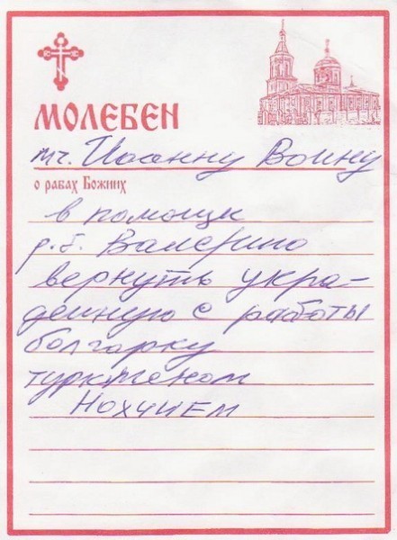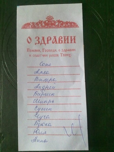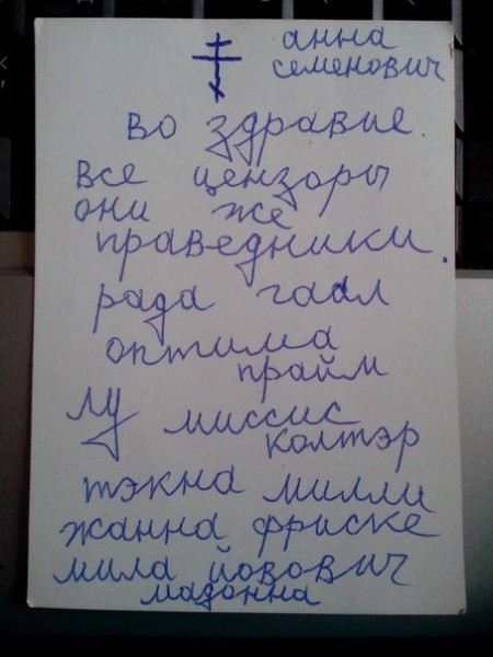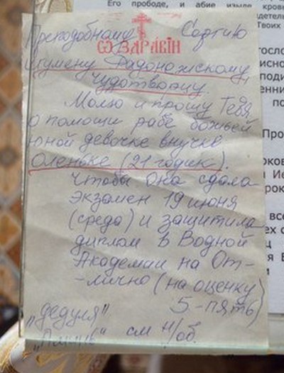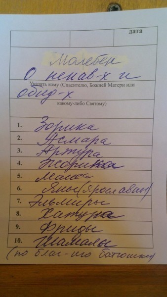 А вот за кого просит молиться автор этой записки, поймут не все. Но подростки поймут.