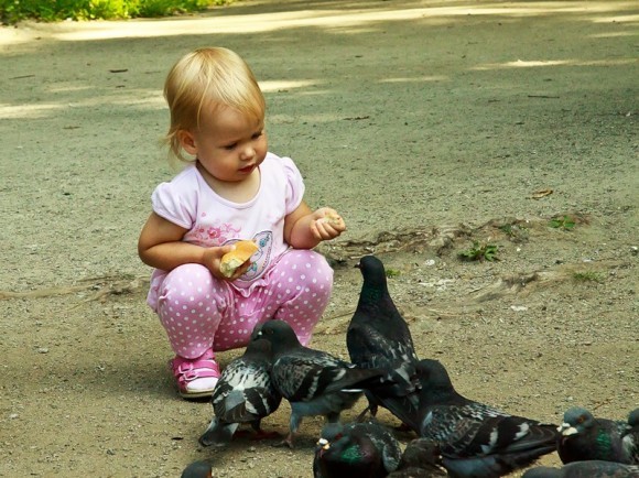 На беду сделала она это прямо на тропинке под деревом, где-то и дело проходили люди; в мире взрослых это не поощряется. Думая, что предвижу развитие событий, я ждала момента, когда кормушка будет растоптана первым же прохожим, и уже приготовила слова утешения для этой маленькой девочки. Но прохожие все как один обходили детскую забаву, понимающе глядя вначале себе под ноги, а потом на ветку с упрямым голубем.