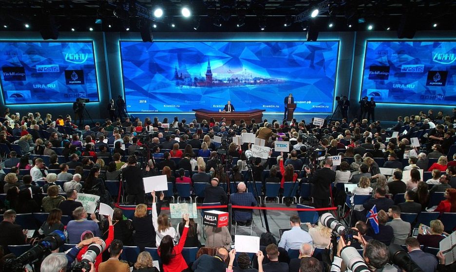 20 декабря президент России Владимир Путин проводит большую пресс-конференцию по итогам годам. Мероприятие традиционно проходит в Центре международной торговли в Москве. В этом году на пресс-конференцию аккредитовалось рекордное количество журналистов – 1702 человека. Примерно две трети представителей СМИ приехали в Москву из российских регионов, еще несколько десятков сотрудников средств массовой информации представляют другие страны.