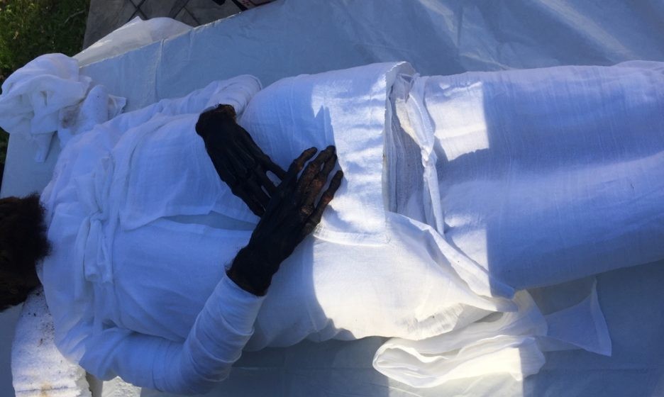 После удаления пыли с тела, святые мощи промыли теплой водой и белым вином, а также обработали маслом.