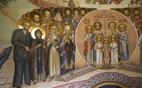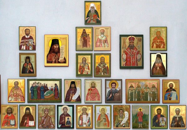1918 год. Первые новомученики Бутырские: епископ Селенгинский Ефрем, протоиерей Иоанн Восторгов (расстреляны на Ходынском поле), Николай Варжанский. Икона «Изъятие церковных ценностей». На ней – воспротивившиеся беззаконию протоиереи Василий Соколов, Христофор Надеждин и Александр Заозерский, иеромонах Макарий (Телегин) и мирянин Сергий Тихомиров.