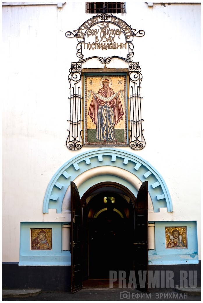 Дверь ведет к тюремному Покровскому храму, построенному, как и тюремный замок, в конце ХVIII века Матвеем Казаковым. Храм тоже был когда-то памятником архитектуры: изящная ротонда на четверике, куда вели крытые переходы изо всех отделений тюрьмы. Узники (слово «заключенный» здесь не любят) стояли на балконе, слушали службу. Внизу молился народ с воли. Камеры днем не запирались, а войти в церковь мог любой желающий – не то что сегодня. Исповедовались и причащались узники в камерах, куда приходили священники.