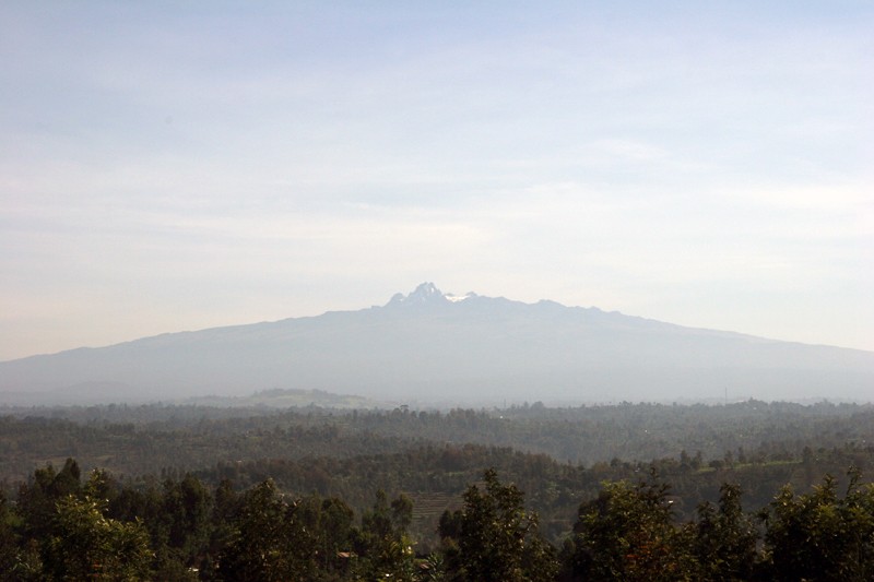 Гора Кения – самая высокая вершина страны, сопровождает нас во время нашего путешествия. Утром она пряталась за облаками, а после обеда прекрасно видны ее снежные вершины.