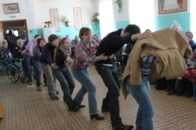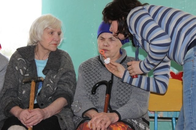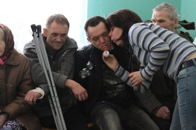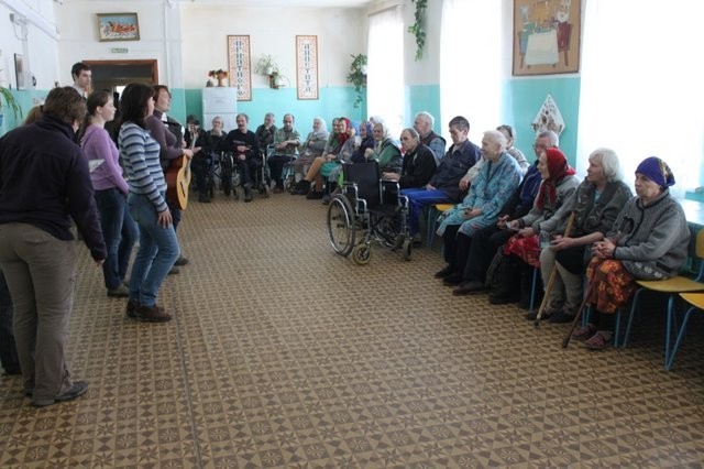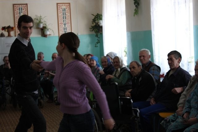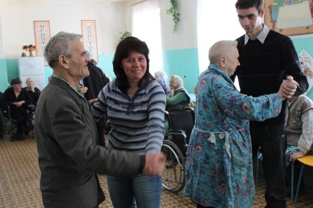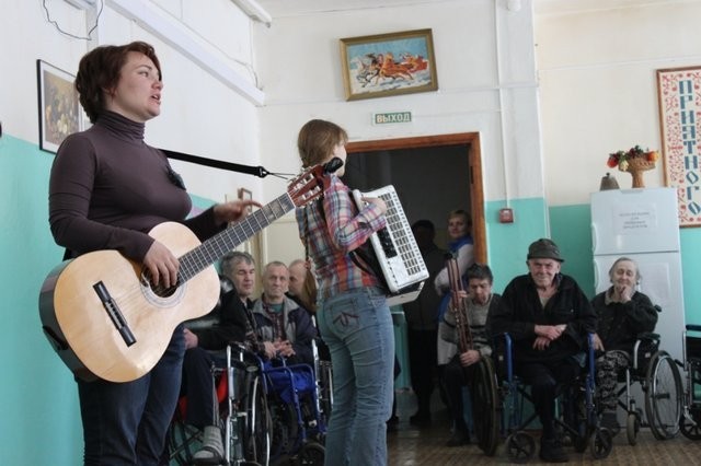 Концерт закончился, дарим всем по пачке конфет и расходимся по палатам — проведать лежачих и поближе пообщаться, потому что самая главная нужда в таких учреждениях — это общение и человеческое тепло..