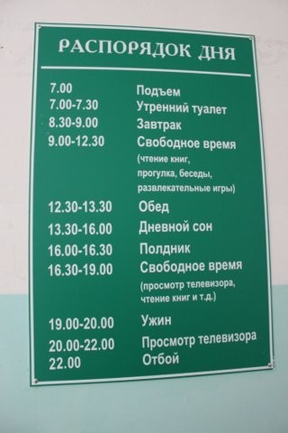 Как входим, сразу зачитываемся висящим на стене распорядком дня. Как у них все рано!