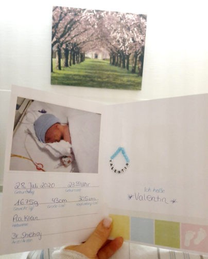 Еще у Яны есть карточка с фотографией Валентина, его ростом, весом, датой и временем рождения. Ее дали им врачи. А в послеродовой палате на стене висела картина — уходящая вдаль аллея. И белое здание вдали. Яна взяла в руку карточку и сфотографировала на фоне той картины. И получилось со смыслом — сын уйдет ТУДА, по этой аллее, к Богу.
