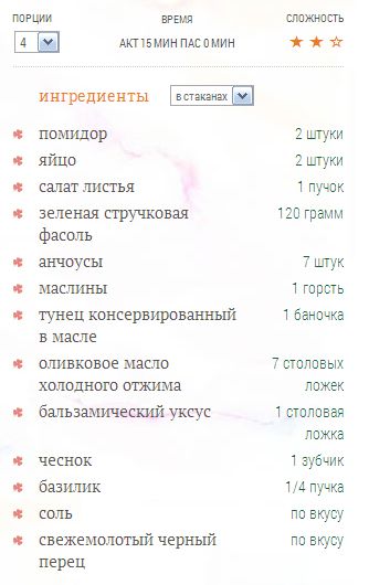 - На дно салатника выложите листья, сверху овощи, маслины, яйца, анчоусы. Выложите тунца. Полейте заправкой и ставьте на стол.