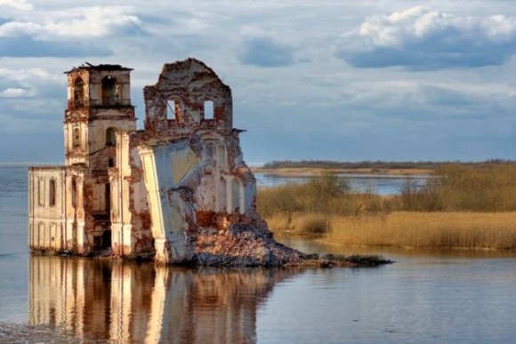 Другая история началась лет 20 назад. Теплой летней ночью речной пассажирский теплоход шел по Волго-Балтийскому каналу. И вот, в свете полной луны посередине водной глади совсем рядом с кораблем внезапно возникла белая громада храма. Откуда здесь храм? В первую секунду была мысль — не мираж ли? Потом конечно я понял, что храм — настоящий и… затопленный…