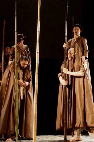 — Могу. Один мальчик из таких, достаточно сложных, не только у меня в процессе, а вообще. Так вот, мы его оставили, потому что, безусловно, это было очень важно для его развития. По принципу “не мешает, значит, уже помогает”. В спектакле есть момент, когда ребята идут через джунгли: стоит тростник из бамбуковых палочек, и они сквозь него проходят. Для этих детей собрать свое тело, сфокусировать его так, чтобы пройти и не уронить ни одну из палок, сложно. И на разных спектаклях это получается по-разному. Иногда они задевают, иногда нет.