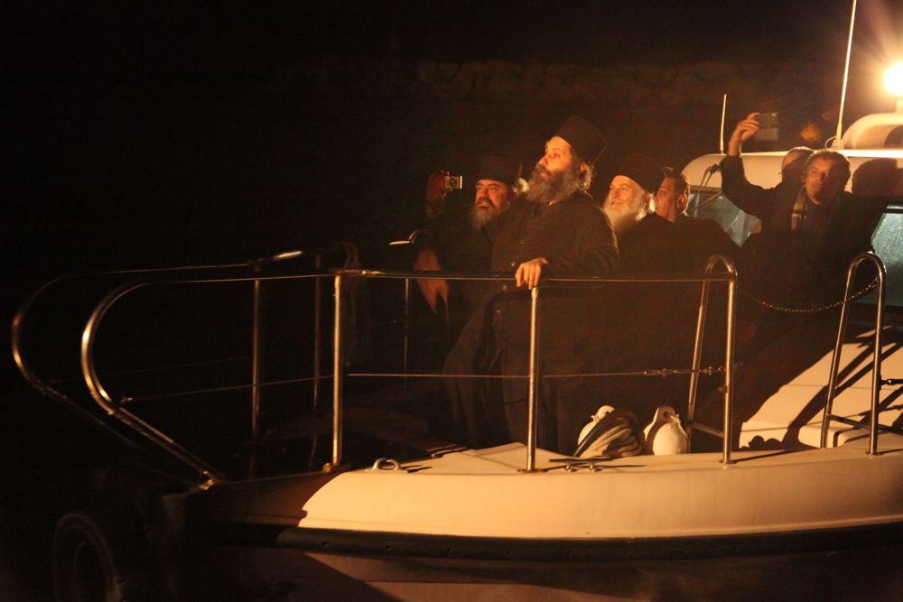 На приветственные гудки монастырского катера сотни верующих у причала отвечают дружным хором песнопений: настоятель Ватопедского монастыря архимандрит Ефрем возвращается на Афон — позади три месяца, ставшие испытанием для всего православного мира: с декабря прошлого года настоятель древней и почитаемой обители находился под стражей в афинской тюрьме по обвинениям в мошенничестве и отмыванию денег. Несмотря на усталость от долгой дороги и слабое здоровье (у отца Ефрема тяжелая форма диабета) игумен с причала направляется прямо в храм: провести литургию, день его возвращения в православном календаре пришелся на праздник Похвалы Богородицы.