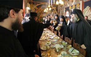 Вы, наверно, замечали, когда мы бываем в святых местах, в монастырях, как там бывает вкусно, хотя это совершенно простая, деревенская еда: картошка какая-нибудь, салат обыкновенный, капуста. Или если поста нет – молочные продукты. Как это всё вкусно! Потому что это простая, естественная еда. Она освящена молитвою, и готовится она со смирением, и вкушается она с молитвою. И присутствие благодати Божией придает пище вкус.