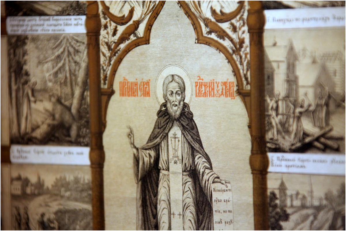 Куратор выставки Яна Эрнестовна Зеленина в приветственном слове гостям выставки сказала: «Мы попытались найти свой аспект в осмыслении этой темы. Мы видим сходство путей двух великих подвижников – преподобного Сергия и преподобного Серафима – один стоит у истоков формирования национальной монашеской традиции, а второй завершает эпоху старчества накануне трагических революционных событий».