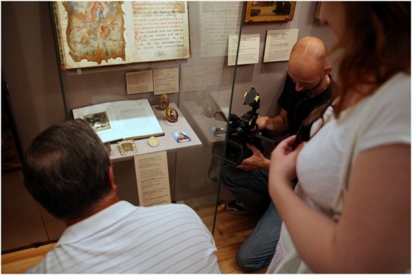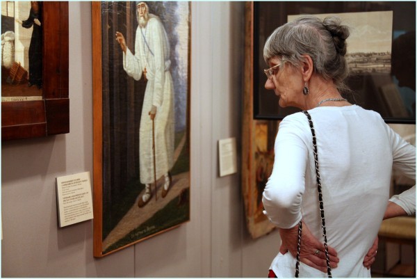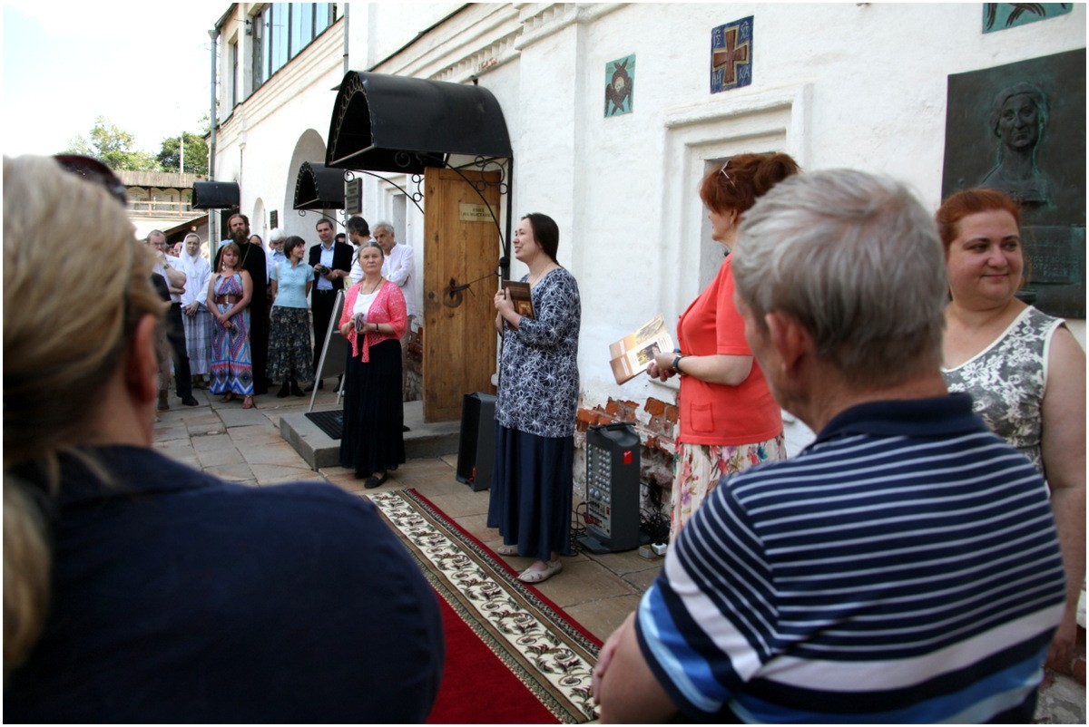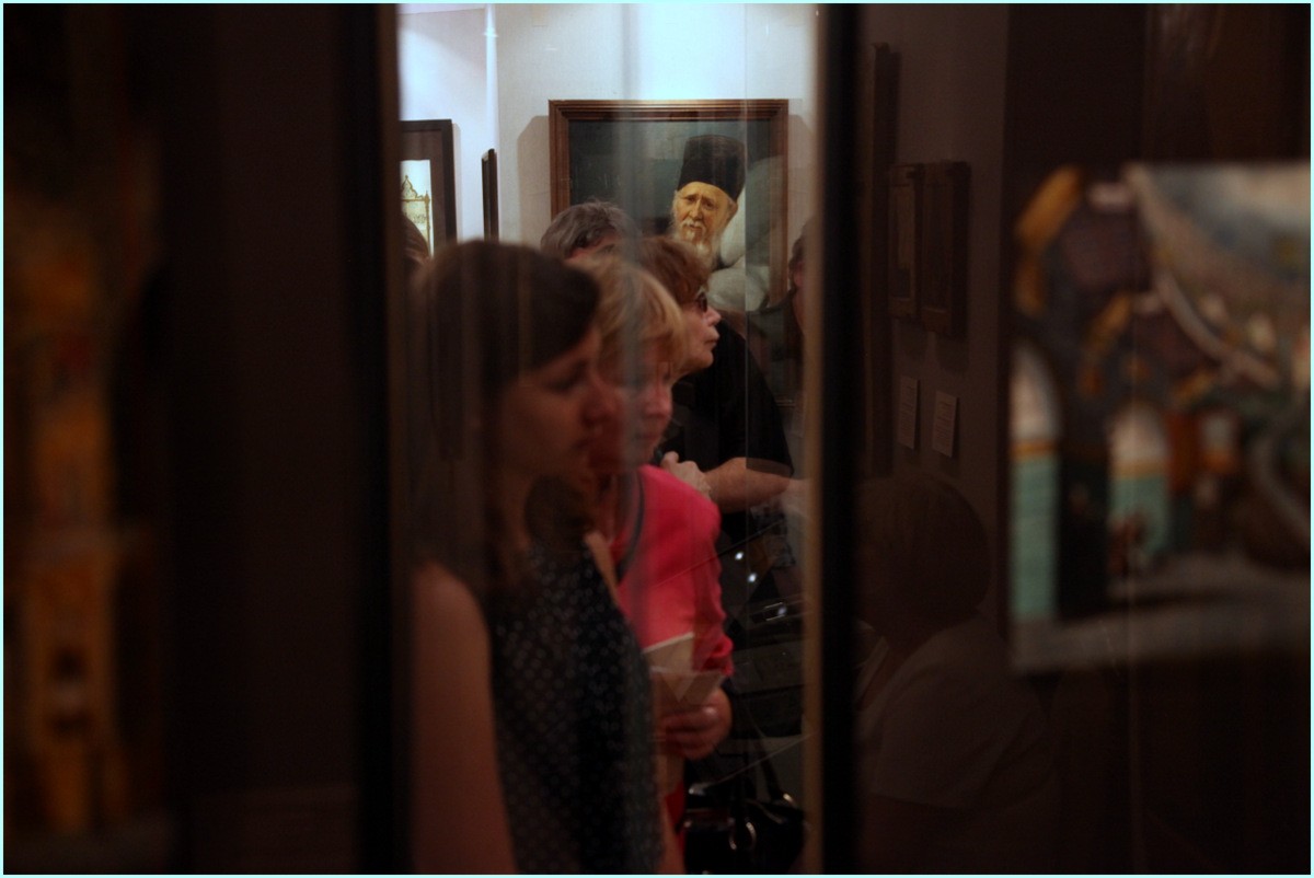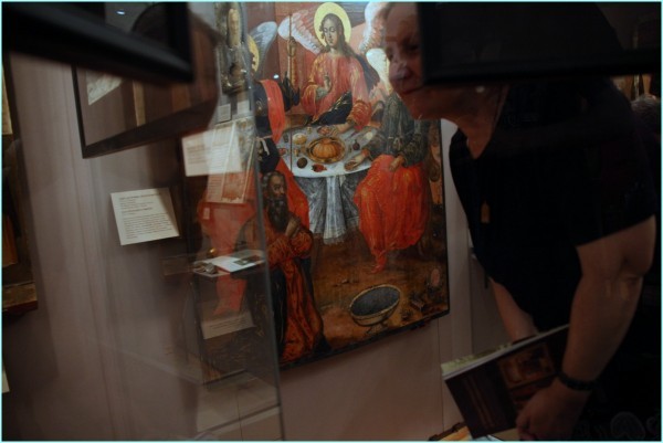 Куратор выставки Лариса Ивановна Алехина поделилась трудностями подготовки экспозиции, как не сразу было понятно, каким образом разместить иконы, но постепенно все складывалось так, что было понятно – «сами святые находили свое местечко».