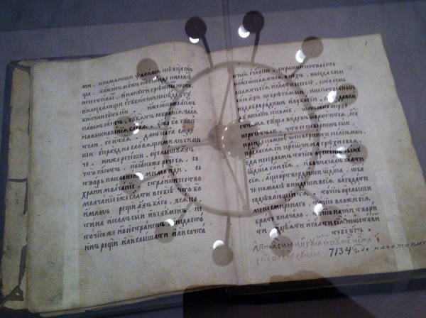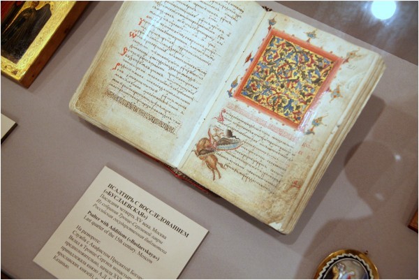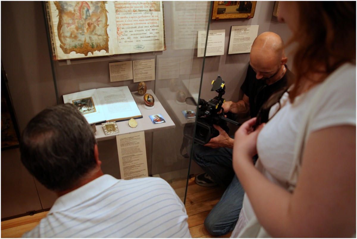 Особенно поражает на выставке раздел представленных рукописей, одна из них – Слова Симеона Нового Богослова 1628 года. К этому времени книгопечатание существует уже почти 70 лет, но еще долгое время переписывание книг, необходимых для богослужения, соборного и келейного чтения, будет одним из монашеских деланий.. Эта рукопись сделана настоятелем Ниловой пустыни, который в будущем станет архиепископом Тобольским и Сибирским.