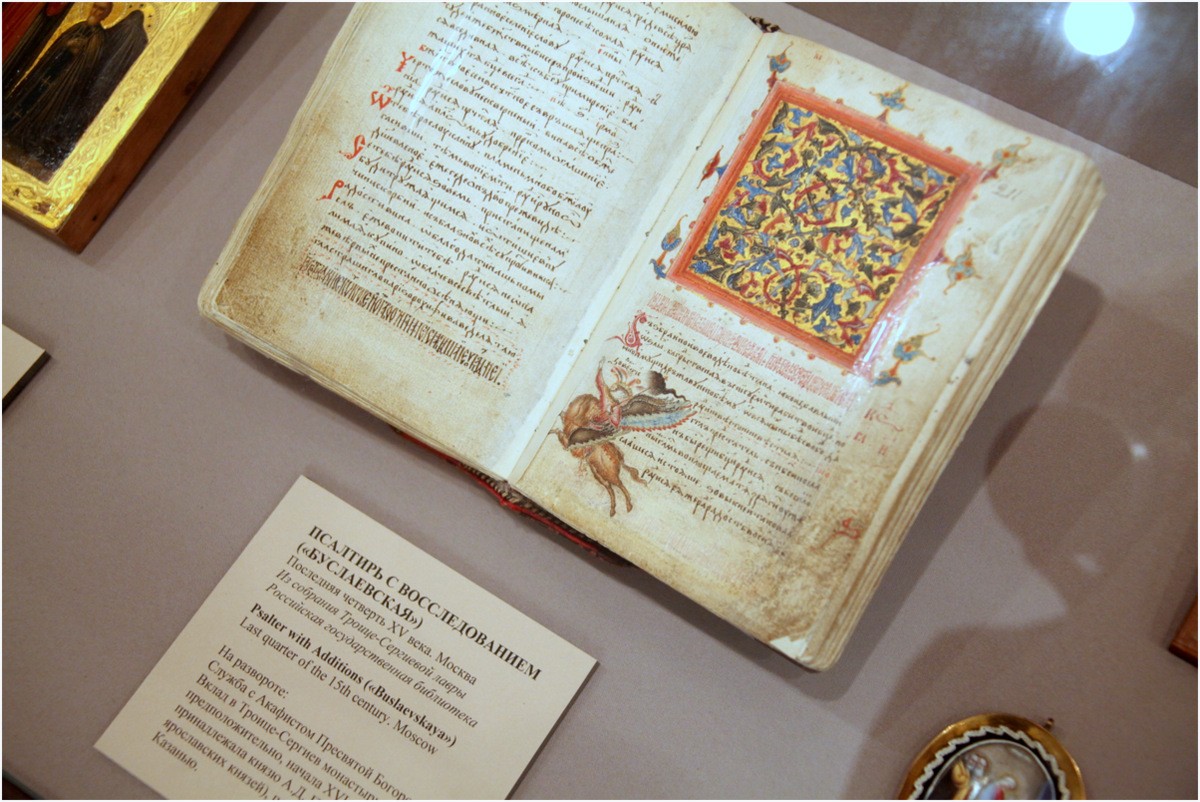 Выставка состоялась благодаря участию в ней Вологодского музея-заповедника, Серпуховского музея, предоставившего ценнейшие рукописи, Музея русской иконы, Дома иконы на Спиридоновке, Российской государственной библиотеки, Государственного архива древних актов, а также ряда частных собраний. Многие экспонаты выставляются впервые. На выставке есть памятники культуры XIV, начала и середины XV века, то, что практически никогда не выдается музеями из постоянной экспозиции.