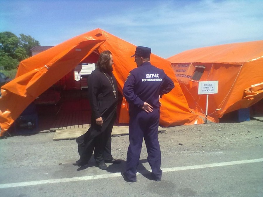 Палаточные лагеря регулярно посещают служители Шахтинской епархии. Священники на уровне отделов епархии, на уровне благочинных созваниваются между собой и по зову сердца помогают беженцам.