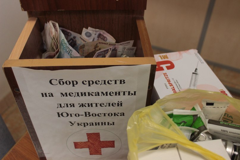 Люди приносят вещи и продукты, которые мы передаем в централизованные пункты помощи городов и районных центров. Продукты принимают только в заводской или магазинной упаковке. Русский народ хлебосольный, продуктов приносят много.