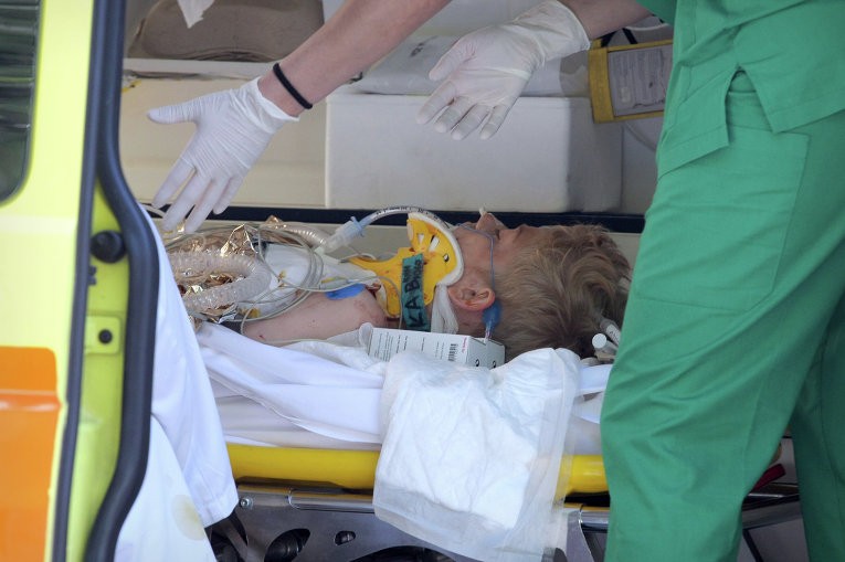 В посольстве РФ в Греции РИА Новости сообщили, что ребенок в тяжелом состоянии в 13.00 был доставлен военно-транспортным самолетом детскую клинику «Аглая Кириаку» в Афинах, где получает необходимую медицинскую помощь в отделении интенсивной терапии. Его состояние стабильное, проводится полное обследование. Главврач больницы заверил сотрудников посольства, что будет сделано все необходимое для лечения ребенка.