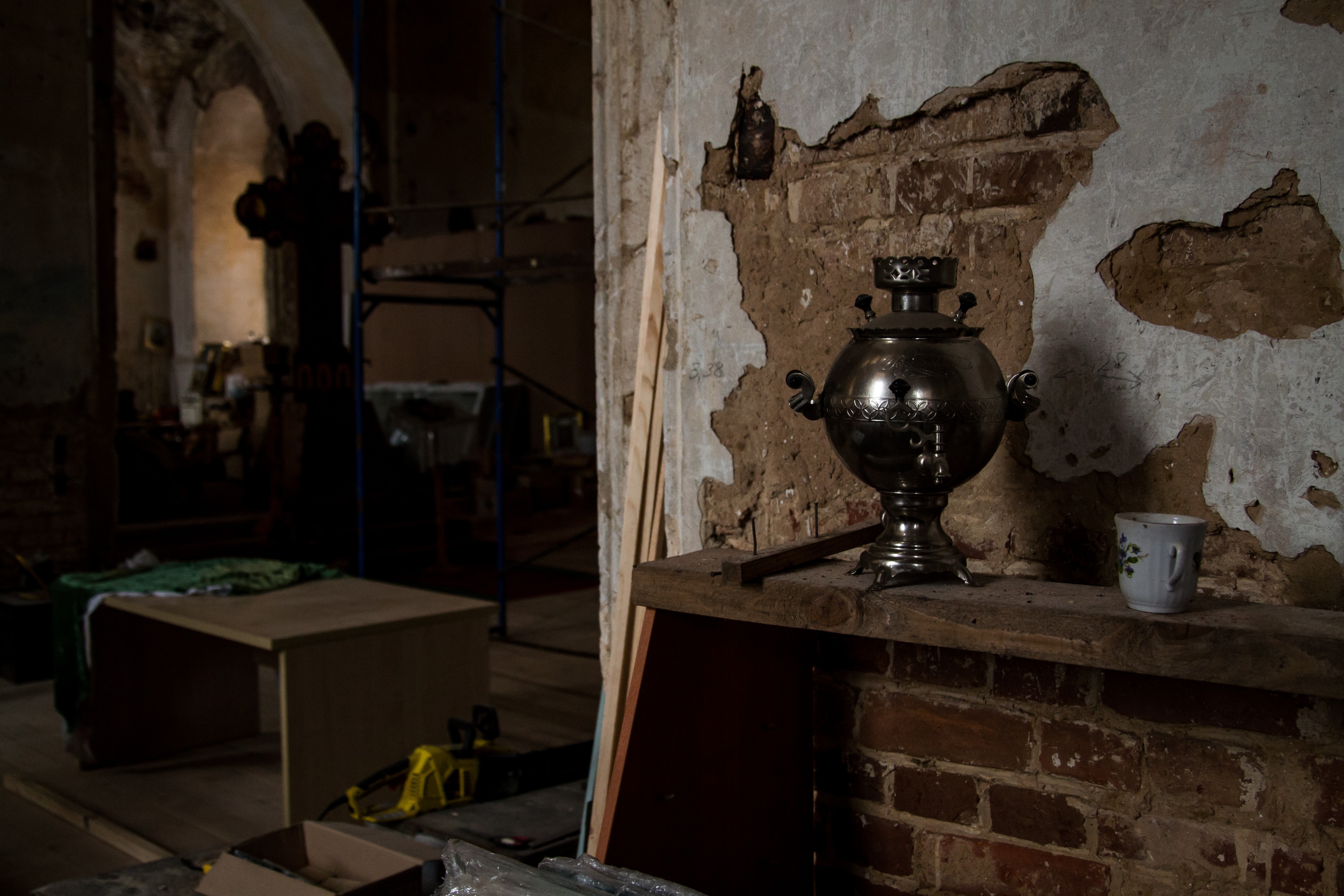 Стало там и правда внушительно. И не сказать, что еще два года назад на стенах храма были любовные и нецензурные надписи, палочки, процарапанные гвоздем – это колхозники отмечали, сколько машин с зерном выгрузили. Вместо пола было десять тракторных тележек ржаной трухи, гнилушек и дырявых ботинок. Сейчас – современные котлы, отапливающие обширное помещение, крепкий красивый алтарь, арочные новые окна.